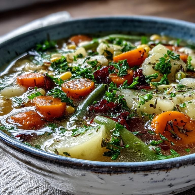 Save The kitchen window was fogged over completely, and outside the snow kept falling in thick, silent waves. I had a pile of vegetables on the counter and no real plan, just the kind of restlessness that comes when you're stuck indoors and need to do something with your hands. That's when I remembered my neighbor mentioning her grandmother's snow day soup, something simple the Amish made when winter locked them in. I started chopping, and the smell of onions hitting hot olive oil filled the quiet house with purpose.