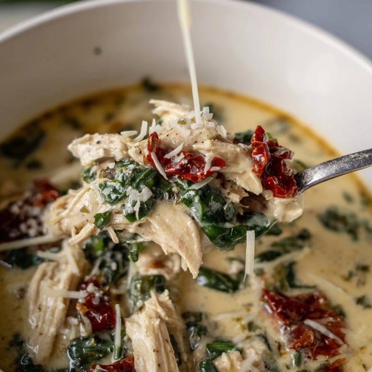 Save The smell hit me before I even opened the front door: garlic, cream, and something faintly sweet and tangy. My neighbor was testing a soup recipe she'd picked up during a trip to Florence, and she'd left a container on my porch with a note that just said, Try this. One spoonful and I was sold. I spent the next week recreating it in my own kitchen, tweaking the broth, adding more spinach, and hunting down the perfect sun-dried tomatoes until it felt like mine.