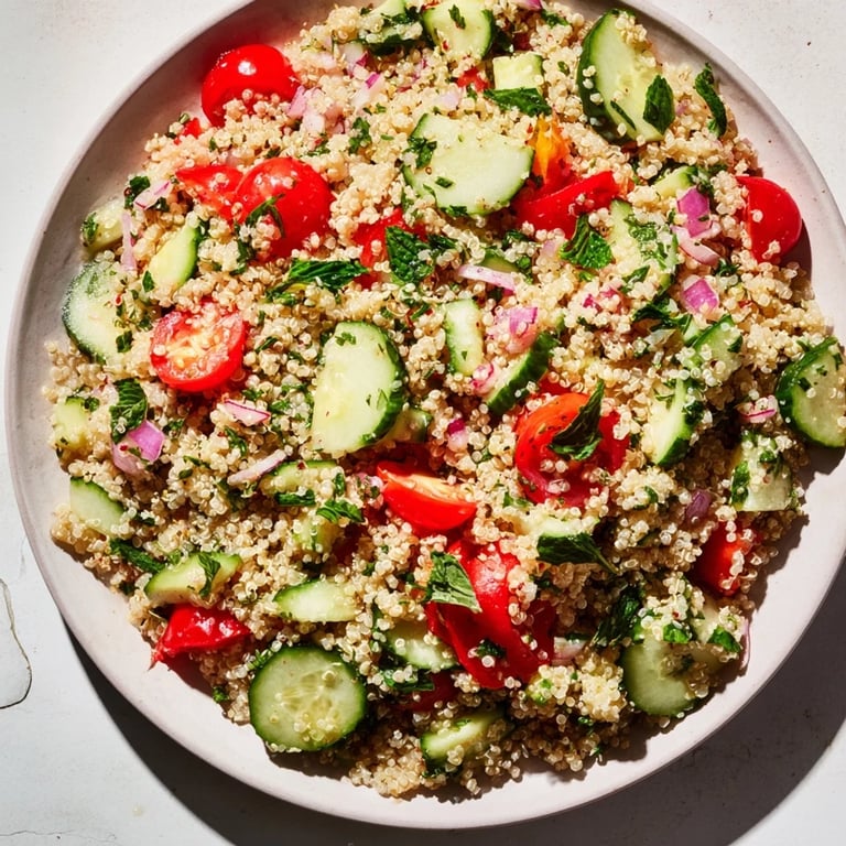 Save This salad combines the nutty texture of quinoa with fresh, crisp vegetables and herbs, making every bite delightful. The lemon vinaigrette brings a vibrant zest that enhances each ingredient while keeping the dish light and healthy.