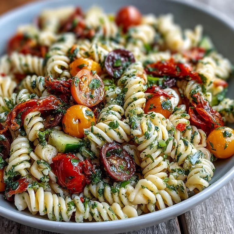 Save My neighbor handed me a container of this pasta salad at a summer barbecue, and I nearly devoured it before the main course arrived. The crunch of fresh vegetables mixed with those little mozzarella pearls, all glistening with a homemade Italian dressing, felt like someone had bottled sunshine and tossed it with pasta. What struck me most was how simple it seemed, yet how utterly addictive it tasted. Now I make it constantly, especially when I need something that looks impressive but won't stress me out in the kitchen.