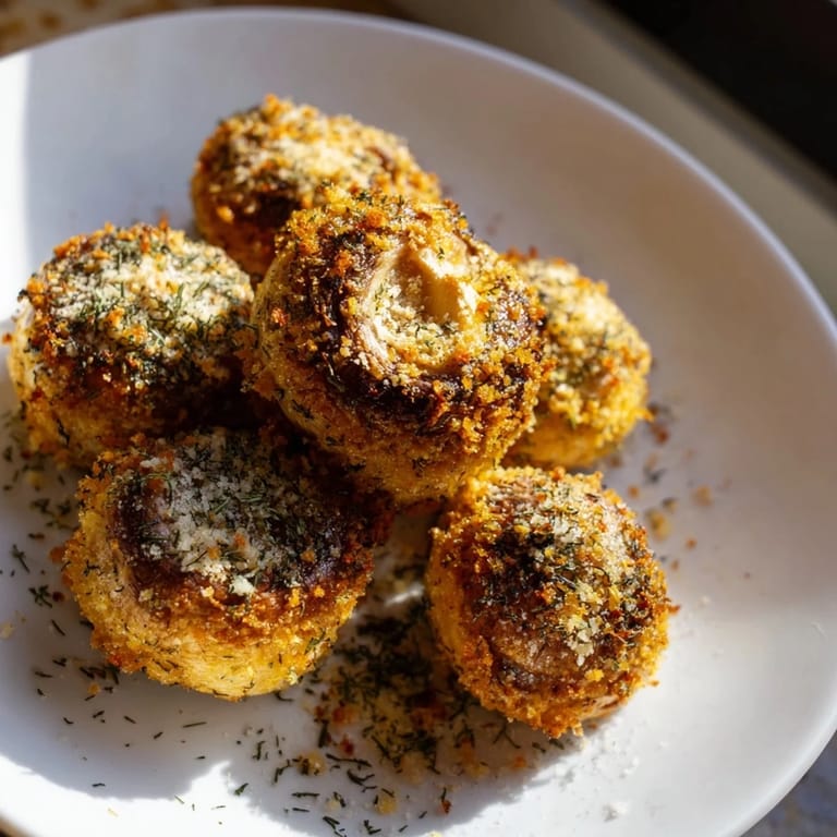Save My neighbor showed up at a game night with a platter of these mushrooms, and I remember thinking they couldn't possibly be baked—they were too golden, too crispy, too ridiculously good. She laughed when I asked for the secret, handed me the recipe, and admitted she'd been making them every week because her kids actually asked for mushrooms as a snack. Now I understand why.