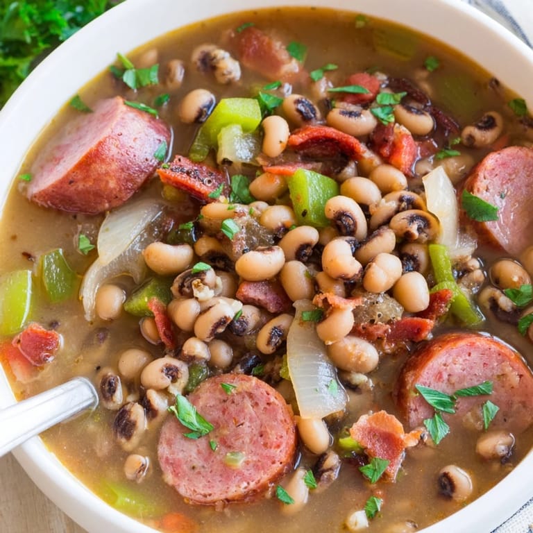 Save My grandmother swore by black-eyed peas every New Year's Day, claiming they brought fortune and kept away any bad spirits lurking from the year before. The smell of simmering smoked pork and vegetables would fill her tiny kitchen for hours, making the whole house feel like a warm embrace. I was skeptical about the luck part until I started making them myself and realized the real magic was in how this humble dish could gather everyone around the table, lingering over bowls long after midnight had passed and resolutions were being whispered like secrets.